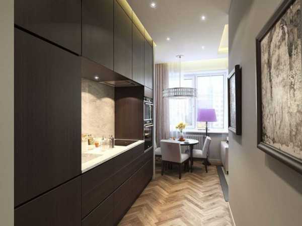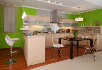 Начнем с пола. Покрытие желательно выбирать такое, чтобы оно подходило как для кухни, так и для жилой части. Идеальный вариант — линолеум и плитка.