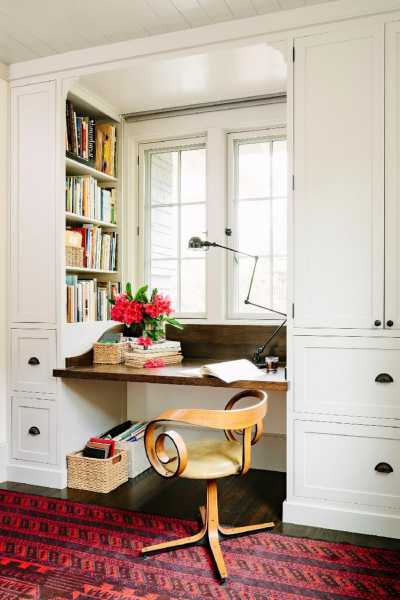 Наиболее удачным вариантом для рабочей зоны, является совмещенная лоджия или место возле окна, где иногда подоконник переоборудуют под письменный или компьютерный стол. Данный функциональный участок оснащают стеллажами, ящиками, полками для различной канцелярии, документов и прочего, а также дополняют с помощью настольной лампы или точечных светильников.
