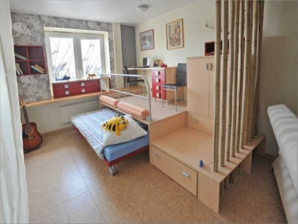 Для семьи с ребенком, вне зависимости от его возраста, требуется обустройство целой комнаты или личного уголка для учебы, игр и отдыха. В случае с однушкой или квартирой-студией, для детской выбирают самое светлое и хорошо освещенное место в помещении. Данный участок оборудуют рабочим столом, кроватью, шкафами, полочками и отделяют с помощью ширмы, шторы или перегородки.