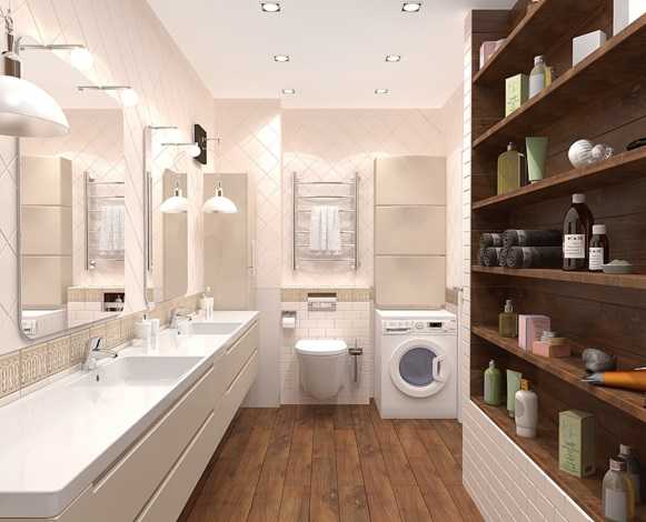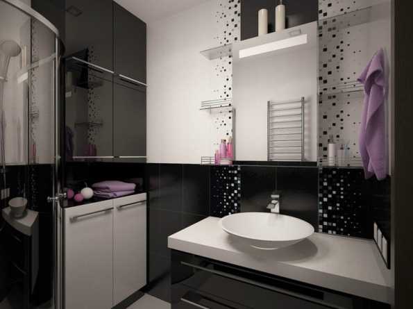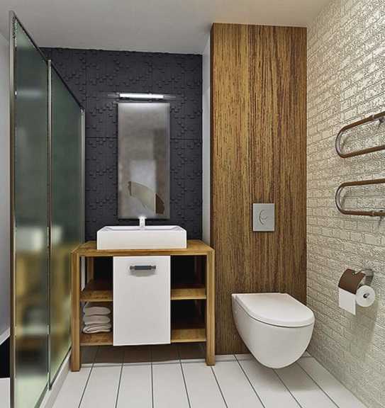 Дизайн квартиры 35 квадратов, чаще всего предполагает совмещенный санузел. В данной комнате прекрасно размещается стильная душевая кабина, а остальная свободная площадь оборудуется узкой умывальной тумбой, компактной сантехникой и стиральной машинкой. Для небольшого санузла в хрущевке, желательно выбирать более минималистичное оформление, не предполагающее много лишних деталей и декора.