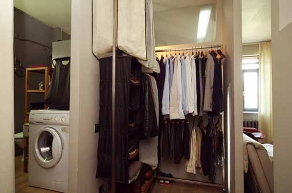 В хрущевках есть малюсенькое помещение – волшебная кладовка, в которой у многих еще храниться разный хлам. Вот ее можно самостоятельно переделать в шкаф. И это может быть не просто шкаф-купе, но и полноценная система хранения, если подойти к вопросу с умом. Тогда в комнате нам уже не придется устанавливать громоздкий ящик под названием гардероб! И вот у нас еще пару метров и освободится.