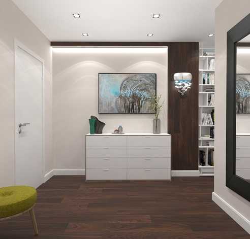 Начну от входа. Первое помещение – прихожая. Обычно это узкий коридор, в котором всего полно, а наступить негде. Чтобы сделать прихожую в хрущевке просторной и при этом сохранить возложенные на нее функции, можно поступить так: