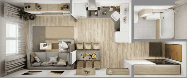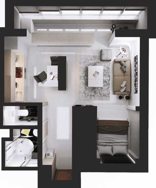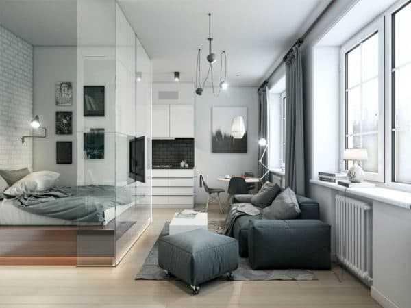 Дизайн квартиры 35 кв. м. [60+ фото] планировки 1-комнатных, студий и евродвушек