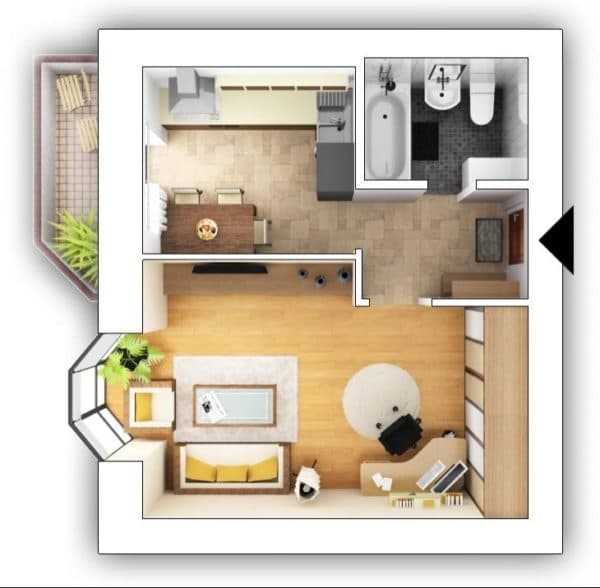 Подобное малогабаритное жилое пространство, должно одновременно отличаться стилем и функциональностью. Для того, чтобы недостаток свободного места, не вызывал дискомфорт при проживании, следует особенно тщательно подойти к составлению плана по разделению квартиры на определенные участки.