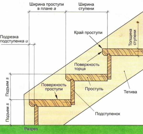Ступеньки любой лестницы состоят из двух элементов: проступи (той части, на которую непосредственно опирается нога) и подступенка – вертикальной части.