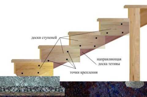 На косоуры крепление производится к торцам вырезов на клей и шурупы.