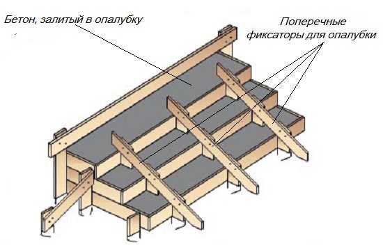 Опалубка для бетонного марша состоит из нескольких ярусов
