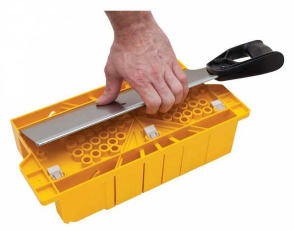 Это простая и мобильная модель, которая, однако, имеет строго зафиксированные углы среза. Также страдает и качество поверхности распила, а сами движения должны быть короткими, что влечет частое выпадение ножовки из паза.