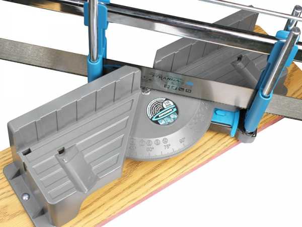 В комплект прецизионного стусла входит регулируемая подставка и съемная пила. В отличие от обычных стусел с ножовкой, пила у поворотных устройств намного качественнее. Она имеет большое длинное полотно из высококачественной стали и очень острыми зубцами. Благодаря этому рез получается гладким и аккуратным. Непосредственно само пиление не занимает много времени, даже при работе с твердыми породами дерева.
