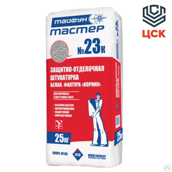 В эту акриловую штукатурку добавили мраморную крошку, благодаря чему она лучше выглядит и легче крепится на стены.