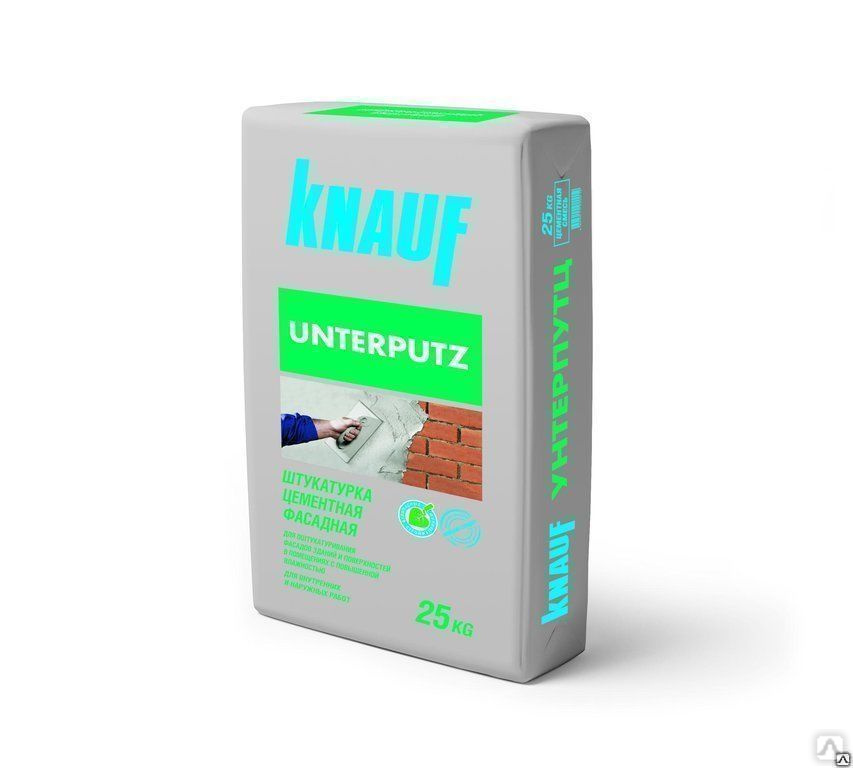 Цементная штукатурка «Кнауф ГРЮНБАНД», цена которой доступная отличается высокой паропроницаемостью, легкостью нанесения, высокими защитными свойствами;