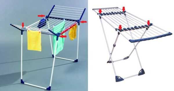 Недостаток – проблемы с вывешиванием тяжелых предметов одежды или белья, так как на крайних перекладинах получается очень большой рычаг приложения силы, и конструкция начинает сильно прогибаться. А это, в свою очередь, может привести к деформации деталей и последующему заеданию или даже заклиниванию всего складного механизма.