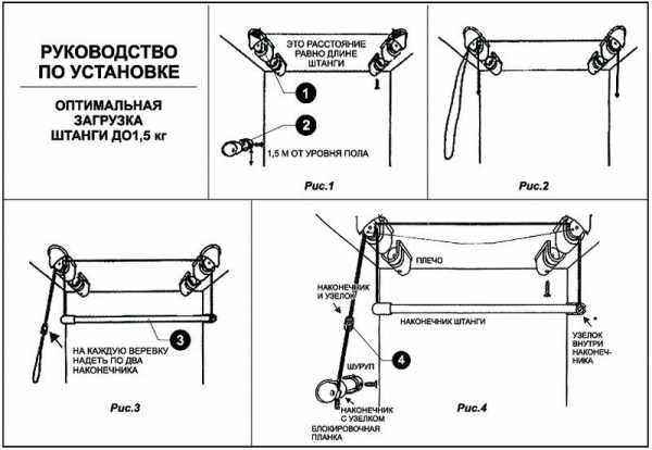 Есть еще настенный вариант описанной выше «Лианы». В этом случае, кронштейн, к которому крепятся планки, закрепляется на стене повыше, планка с нитями регулировки на той же стене, но ниже.