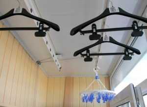 Существует масса приспособлений для сушки белья. Самыми удобными для использования на балконе являются потолочные сушилки. А если позволяет бюджет, можно приобрести электрическую универсальную модель, на которой можно не только быстро высушить белье, она заменит осветительные приборы на балконе.