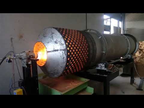 При среднем огне протопите печку в течении сорока минут, уберите влага и сделайте крепкий огонь. Сделаем пробную партию, засыпаем в загрузочное отверстие опилками, в зависимости от температуры и сухости выгружаемых опилок необходимо подобрать скорость загрузки опилок. Если например сырье не проходит из загрузочного отверстия следует легонечко блокировать отверстие воздухозаборника, или можно покласть на колосник чуть-чуть печного шлака, благодаря этому станет меньше объем воздуха, попадающего во вовнутрь.