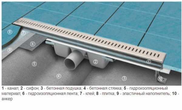 Схема устройства линейного душевого трапа