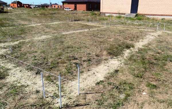 - Сначала выравнивается площадка на месте будущего строительства и проводится разбивка основания. Тут также учитывается ширина, длина и глубина будущей траншеи под железобетонную ленту.
