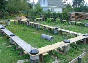 Такой фундамент будет идеальным вариантом при строительстве деревянных и каркасных домов, бань, хозяйственных построек, беседок, имеющих небольшую общую массу.