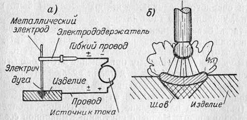 Металлический стержень электрода за счёт действия электрической дуги плавится, и электродный металл, покрытый шлаком, попадает в сварочную ванну, после чего происходит его смешивание с металлом изделия. Так происходит образование сварочного шва.