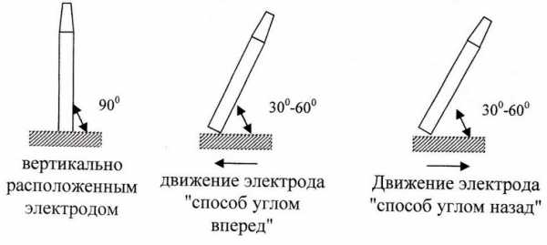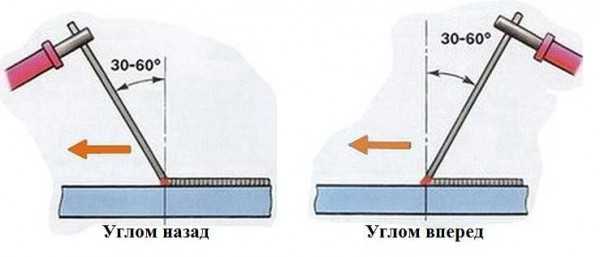 Техника ручной дуговой сварки: положение электрода углом вперед и углом назад