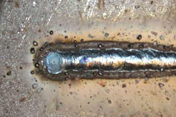 После остывания металла необходимо при помощи молотка сколоть шлак с поверхности ванны и сделать подробный осмотр сделанной работы. Если имеются непроваренные элементы, то необходимо добавить силу тока. Если ток чрезмерно завышен, то это будет видно по большому прожигу металла.
