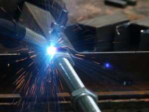 - Провести электродом медленно по поверхности, а после того, как появится искра, необходимо приподнять электрод примерно на 5 мм от поверхности металла.