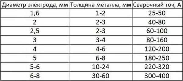 Научиться варить электросваркой невозможно, если не знать, какой выставлять ток. Он зависит от толщины свариваемых деталей и используемых электродов. Их зависимость представлена в таблице.