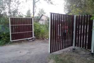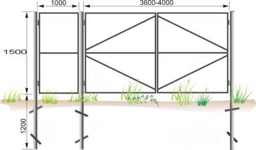 Если же ворота устанавливаются в проеме забора, надо позаботиться о том, чтобы столбы, являющиеся опорами, выдержали их вес.