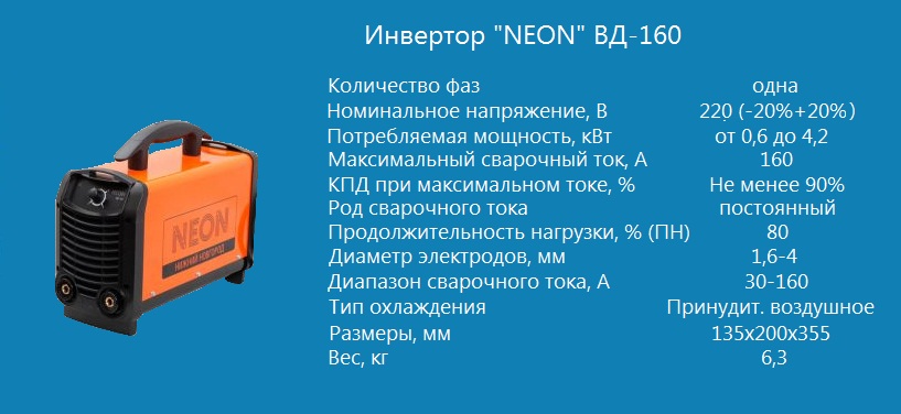 Максимальный сварочный ток для этого инвертора составляет 160 А