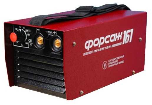 Следующий аппарат в нашем списке — бюджетный полуавтомат от компании «Форсаж». Он не может похвастаться невероятными характеристиками или особым дизайном, но при этом абсолютно надежен и стоит 150$. С его помощью можно осуществить MMA и TIG сварку. В обоих случаях максимально возможное значение тока составляет 160А, но чтобы работать непрерывно установите значение не более 100А. Он отлично подойдет для работы с тонкими металлами в домашних условиях. Словом, дешево и сердито.