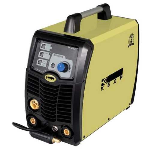 Отлично выглядит с точки зрения функциональности сварочный полуавтомат Кедр MIG-175GD. Он может варить металл в полуавтоматическом режиме, при помощи электродов или в среде аргона. Несложно и перебросить кабели при изменении полярности. Агрегат обладает программным управлением, для установки оптимального режима работы имеется многофункциональный регулятор. Это особенно удобно при частых сменах режимов сваривания. При полуавтоматическом режиме работы профессионалы ценят возможность ручной подстройки кривизны вольтамперной характеристики. Это позволяет с одинаковым успехом варить как массивные детали, так и изделия из тонколистового железа.