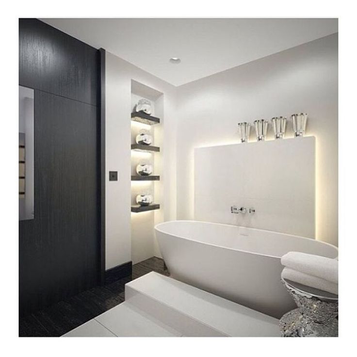 Освещение в ванной комнате должно работать не только над головой, но и на всех уровнях. Многоуровневое освещение обеспечивает максимальный уровень комфорта. И не забываем про скрытое освещение.