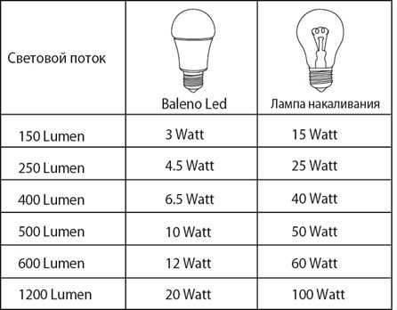 - Световой поток. Другими словами, это яркость источника света. Измеряется в Люменах (Лм). Понять, какой световой поток даст выбранная светодиодная лампочка, поможет таблица ниже.