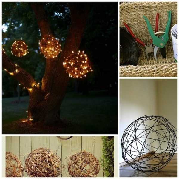 Для длинной гирлянды из мелкий лампочек вы можете создать шар-каркас из проволоки: