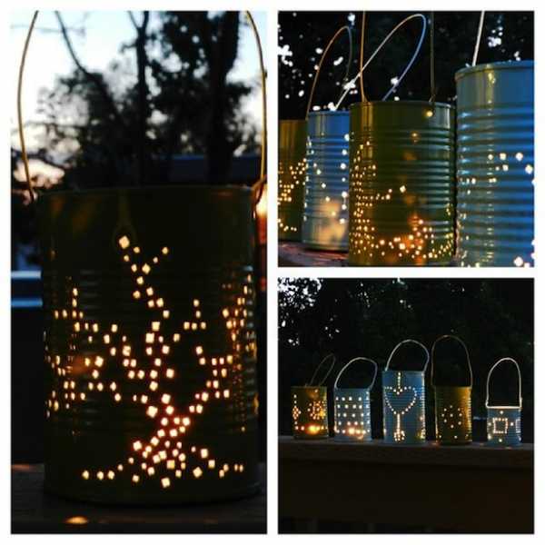 Вот такие фонарики можно сделать из старых жестяных банок. Отличный способ занять детей на даче!