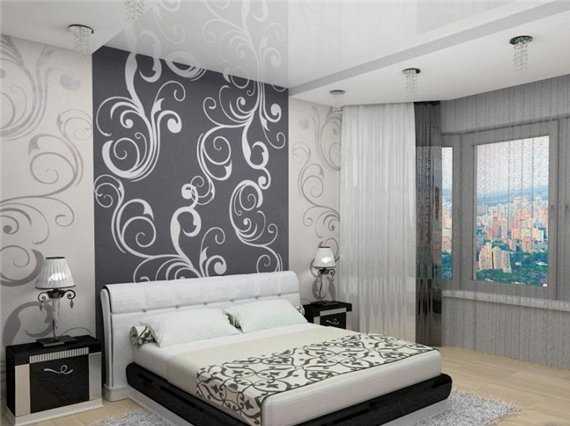 Редко кто выбирает однотонные светлые обои для спальни. Чаще всего выбираются полотна с рисунком, который играет определенную роль в создании настроения. Для создания более радушного, позитивного настроения стоит выбирать необычный и в то же самое время веселый рисунок. Если же нужно добиться большей легкости от спальни, то лучше исключить рисунок «полоску», а стоит выбрать геометрию, всевозможные круги, цветочки.