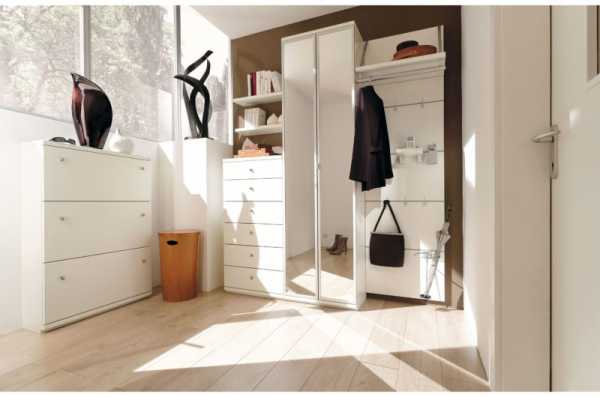 Если понятие прихожей чисто условное, от входных дверей вглубь квартиры идет длинный узкий коридор, мебель тут следует ставить с малой глубиной. Хочется настоящий шифоньер? Наилучший вариант — установка встроенных шкафов.