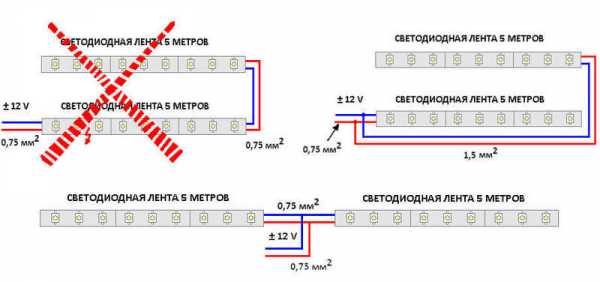 - Если используете несколько лент для освещения, подключайте их параллельным соединением к блоку питания.