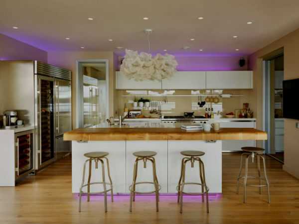 Самостоятельная установка светодиодного освещения на кухне: в рабочей зоне, потолке и других локациях