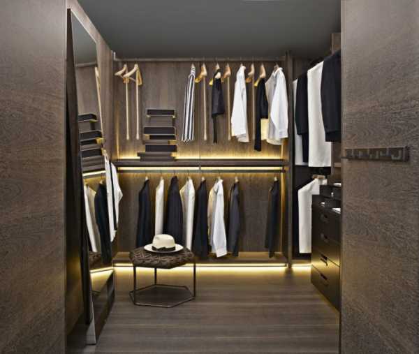 Интересная идея освещения каждой отдельной зоны в гардеробной