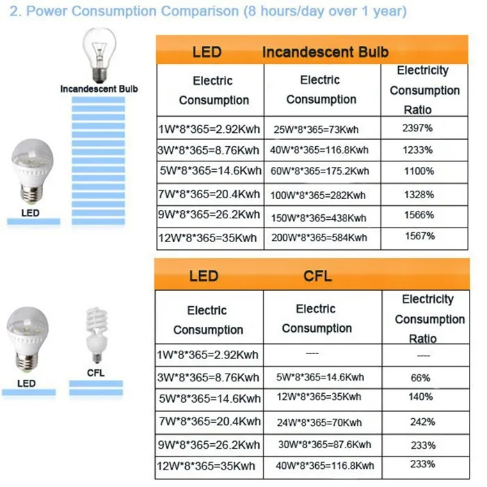 Соответствие мощностей светодиодных, энергосберегающих и ламп накаливания