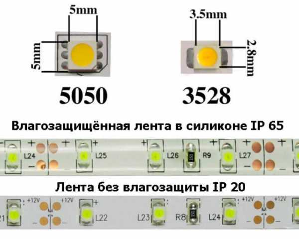 Наиболее распространенные исполнения светоизлучающих диодов: SMD 3528, SMD 5050. Обозначение каждого из вариантов дает представление о размерах излучателей. Например, в первом случае речь идет о габаритах 3,5х2,8 мм, а во второй тип крупнее: 5,0х5,0 мм. С учетом разницы в размерах можно предположить, что каждый из диодов излучает свет разной степени яркости.