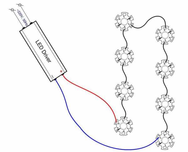 Схема соединения этих кристаллов – последовательно параллельная. Сверху они заливаются люминофором.