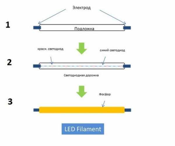 В то же время КПД Filament даже выше, чем у тех же SMD, — при одинаковой мощности первые позволяют получить большую освещенность. Это достигается за счет технологии COG (Chip On Glass, чип на стекле), при которой светоизлучающие кристаллы устанавливаются на стеклянную подложку, а затем покрываются люминофором.