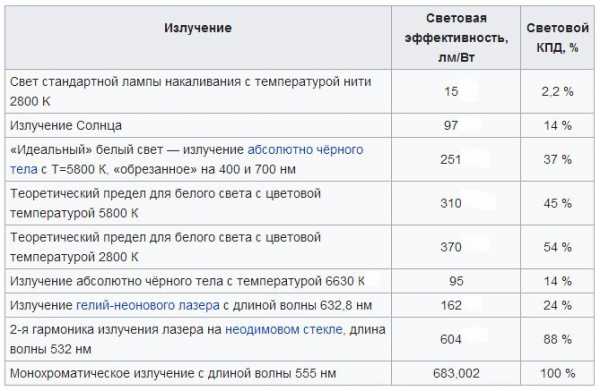 Какова может быть максимально возможная светоотдача в идеальных условиях? В теории она достигает 683 Люмен/ватт.