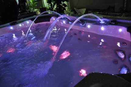 Целебное воздействие струй воды и воздуха усиливается благодаря эффекту хромотерапии. Помимо эстетического наслаждения, она оказывает ощутимое воздействие на физическое состояние человека. Лечение цветом благотворно влияет на состояние нервной системы, желудочно-кишечного тракта.