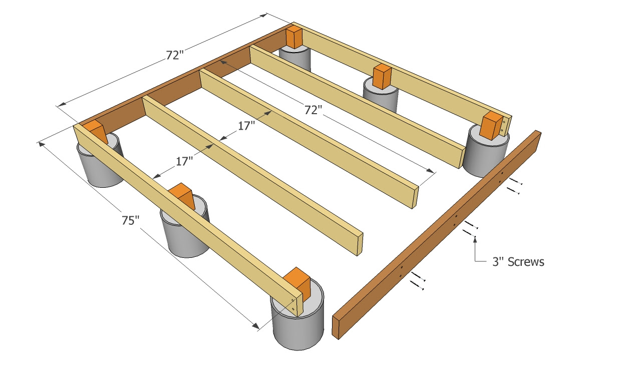 Построить деревянный каркас из бруса можно всего за несколько дней, при этом все, что вам нужно, это брус, доски, шурупы либо гвозди и металлические уголки. Фундамент для такой постройки не нужен даже столбчатый, ее можно собрать на тщательно выровненной площадке, а если вы не хотите, чтобы древесина контактировала с грунтом, под основание можно установить 4 или 6 бетонных блоков. Стропильная система не обязательна, вполне допускается односкатная крыша из ряда поперечных балок и обрешетки, которая застилается мягким шифером.