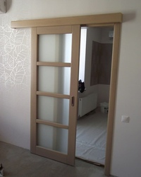 Самодельную дверь купе делают по желанию, открывающуюся за стену или уезжающую в пенал.