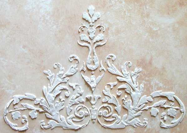 Существуют объемные орнаменты. Их наносят при помощи трафарета, шпаклевки и шпателя. Толщина слоя шпаклевки составляет от 1 до 3 мм. Этот прием позволяет создавать эффектные образы, которые будут смотреться интересно и оригинально.
