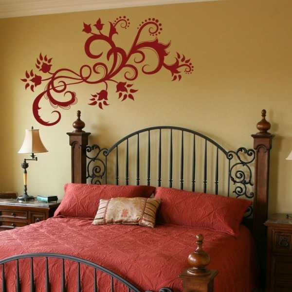 Орнаментом можно украсить зеркала, тумбочки, пространство над столом или диваном. Здесь открыты все возможности для творческой фантазии. Ведь именно индивидуальность владельцев дома должен подчеркнуть настенный рисунок.